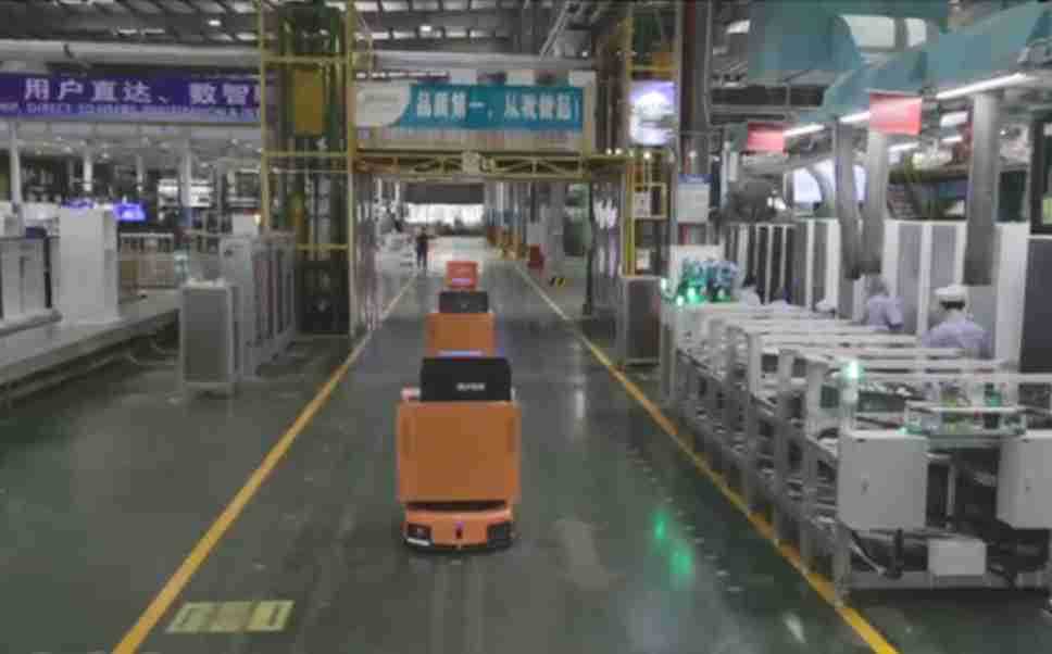 为车载冰箱物流配送打造的智能解决方案,,包含产中物流通过潜伏举升AMR搬运至线边,,,产后成品物流智能仓储,,,,流程包含产中物流智能齐套入库,,线边安灯叫料AMR智能配送至线边,,,成品入库、、、、出库,,,,通过无人堆高车机器人,,,,智能仓储管理替代人工作业管理,,,,实现更高存储、、、、更高效率、、、、更具柔性化的解决方案。。
